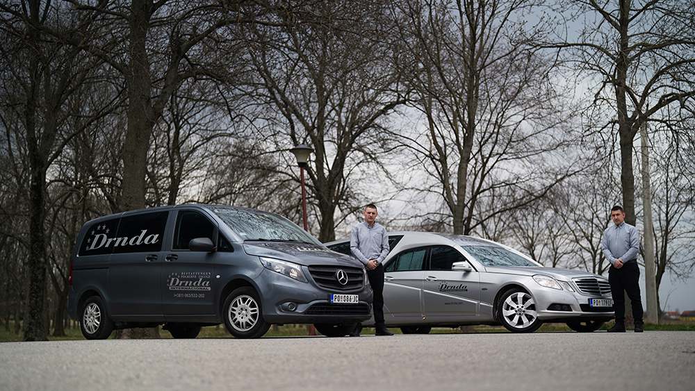 L’entreprise de pompes funèbres Drnda Internacional dispose de nombreuses années d’expérience dans le transport de défunts à travers toute l’Europe. Dès que le client prend contact, l’entreprise commence immédiatement à organiser le transport pour garantir que l’ensemble du processus administratif et de transport soit achevé aussi rapidement que possible sans retard. L’efficacité est garantie par la flotte de véhicules, composée de véhicules luxueusement équipés et certifiés.